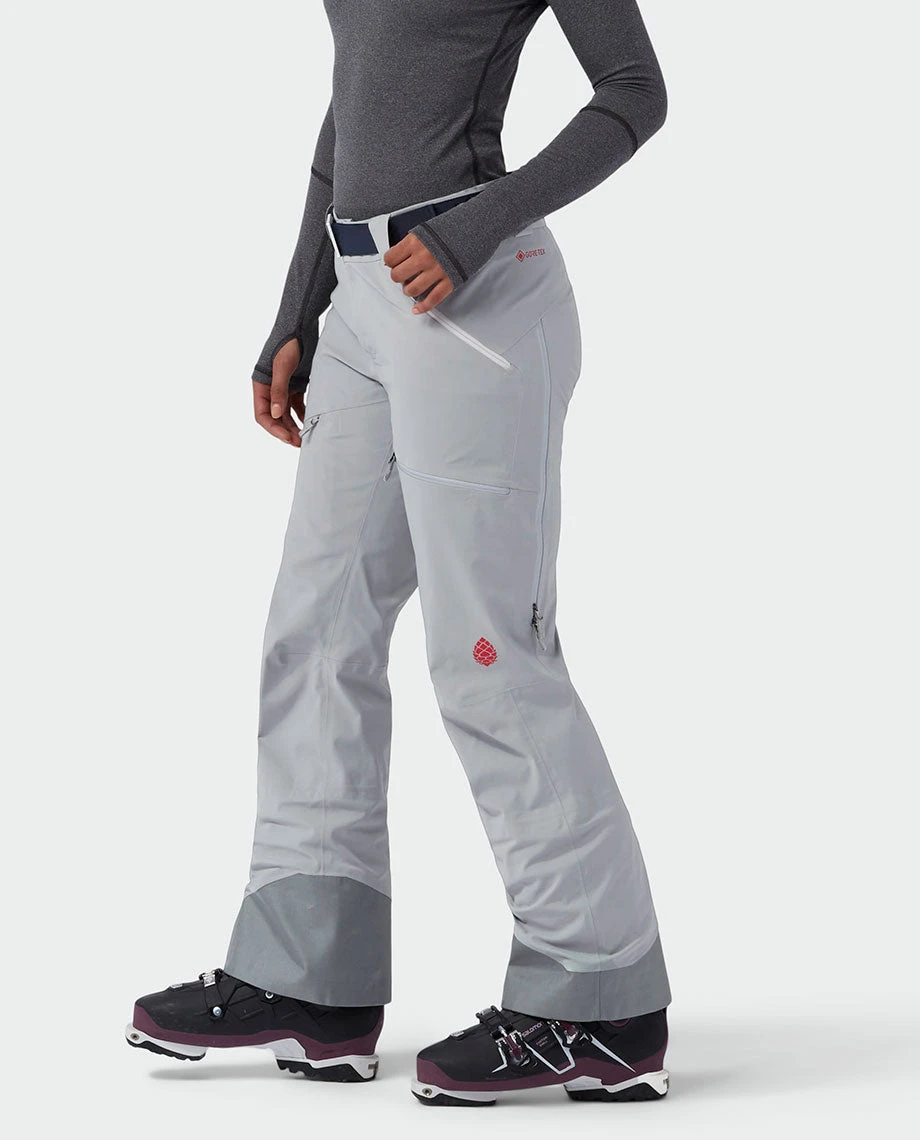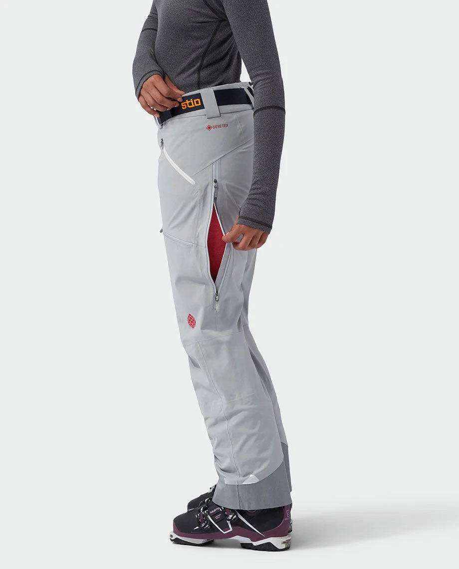 In its element when it’s storming sideways, our credentialed pant never skips a ski day due to harsh weather. GORE-TEX 3L technology seals out unpredictable big mountain weather, yet adds a degree of warmth with a brushed, flannel-like interior texture. Strategically placed back thigh vents shed heat when hiking or skinning into heavy lines. Two thigh-high pockets—one with an internal bar-tacked loop and the other with a mesh media pocket—stash both lift-access or self-ascent essentials bulk-free. A full-wrap CORDURA® kickpatch sheds wear, while a gusseted, articulated shape enables fluid freeride style and a removable Stio belt dials the fit during big vertical days.